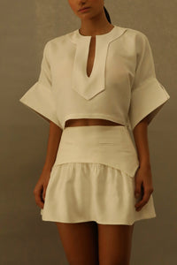 Regular price $248.00or 6x $41.33Sale price $248.00Short Ruched Detail Skirt Bottom - Off-White Linen